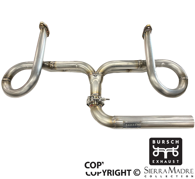 Improve horsepower and efficiency with the iconic 356 Bursch high-performance header/extractor system with a detachable stinger. Made from 16 gauge mandrel bent 304 stainless steel, this tuned system is a direct replacement and easy to install. Additionally, this exhaust was designed to clear aftermarket oil filter adapters such as the popular Precision Matters Full-Flow Oil Filter Adapter. The step system transitions 1 1/2" tubing to 1 5/8" tubing for maximum performance. This set is hand-made in Pasadena, CA. Lifetime warranty!